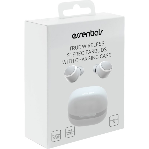 Essentials True Wireless Stereo Earbuds med Laddlåda kombinerar avancerad teknik med hög komfort och hållbarhet. Med sina praktiska funktioner och stilrena design är dessa hörlurar det perfekta valet för alla som vill uppleva äkta trådlös frihet och högkvalitativt ljud. Oavsett om du är på jobbet, tränar eller kopplar av hemma, kan du lita på Essentials för en fantastisk ljudupplevelse.