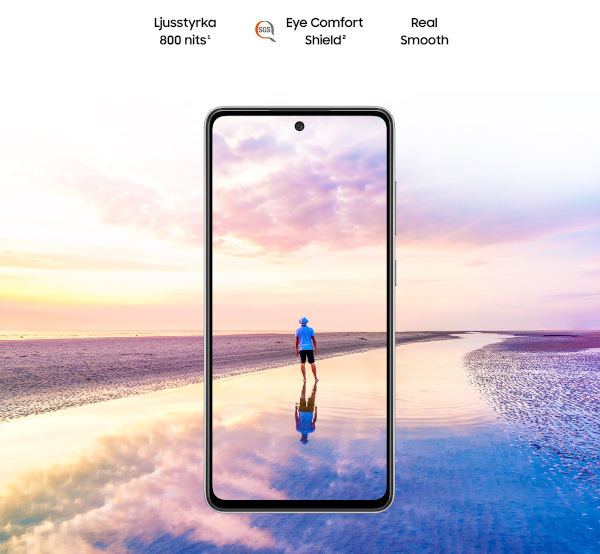 Upplev alla detaljer på FHD+ Super Amoled -skärmen, även i fullt dagsljus. Eye Comfort Shileld reducerar det blå ljuset och Real Smooth ger en smidig upplevelse oavsett om du spelar eller scrollar. Allt på en 6.5-tum Infinity-O-skärm.