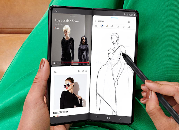 Galaxy Z Fold 3 är den första av Samsungs vikbara mobiltelefoner med stöd för S Pen. Pennan köpes separat och kommer med verklig precision – betydligt skarpare än fingertoppskänsla. När du har mobilen stående i Flex Mode kan du dessutom jobba både hands-free och ännu smartare: Skärmen delas i två och du kan se en presentation eller ha ett videosamtal på den övre delen, samtidigt som du för anteckningar eller skissar ut idéer på den undre.
