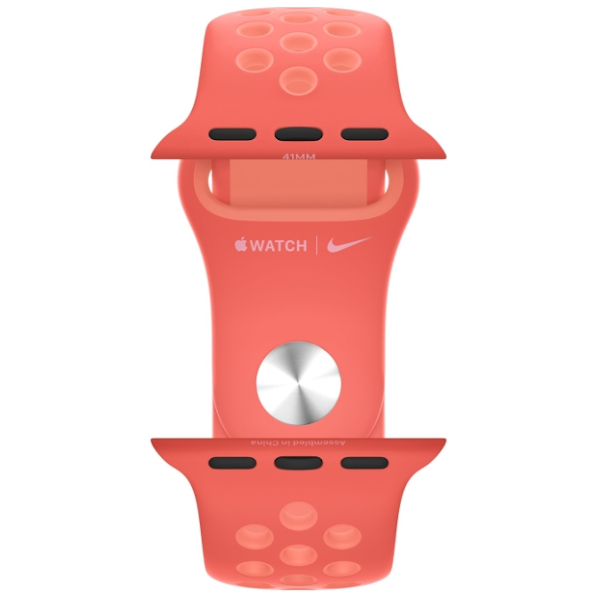 Uttryck din sportiga och modemedvetna sida med detta 41mm Magic Ember/Crimson Bliss Nike Sport Band för din Apple Watch.