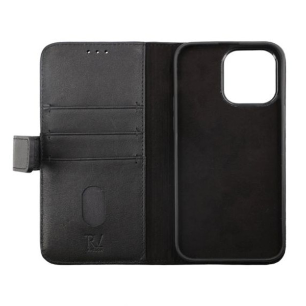 Uppgradera din iPhone 14 Pro Max med Rvelon plånboksfodral i modetrendigt svart läder och njut av en oöverträffad kombination av stil, funktion och säkerhet.