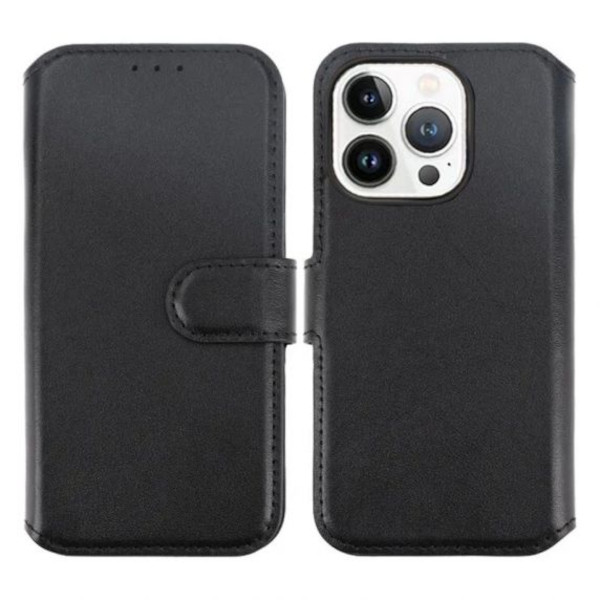 iPhone 15 Pro Max Plånboksfodral i Genuint Läder - Svart: Elegant skydd med överlägsen funktionalitet