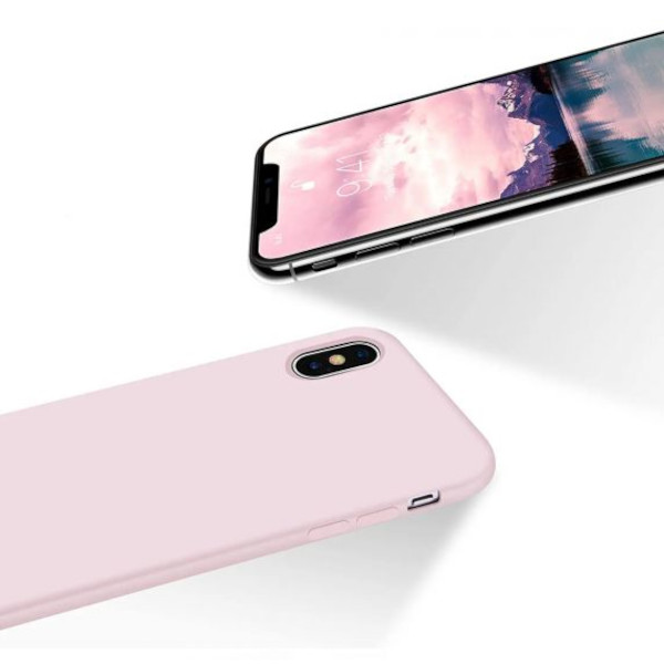 Rvelons sandrosa silikonskal för iPhone X/XS kombinerar funktion och stil för optimalt skydd. Skalet är utformat för att tätt följa telefonens konturer, vilket behåller dess slimmade profil och gör den lätt att hålla.