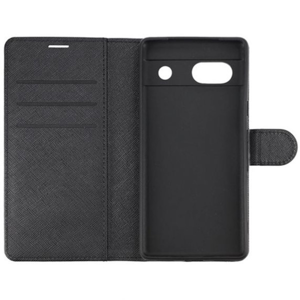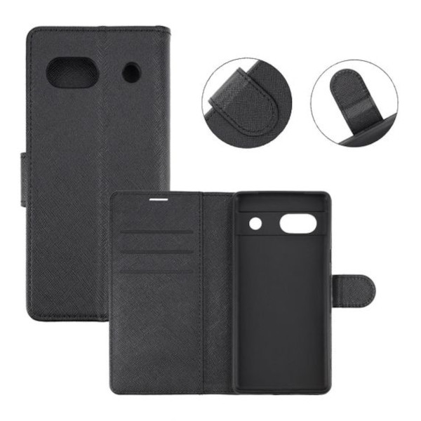 Skydda och förfina din Google Pixel 7A med detta eleganta och praktiska plånboksfodral i svart konstläder.