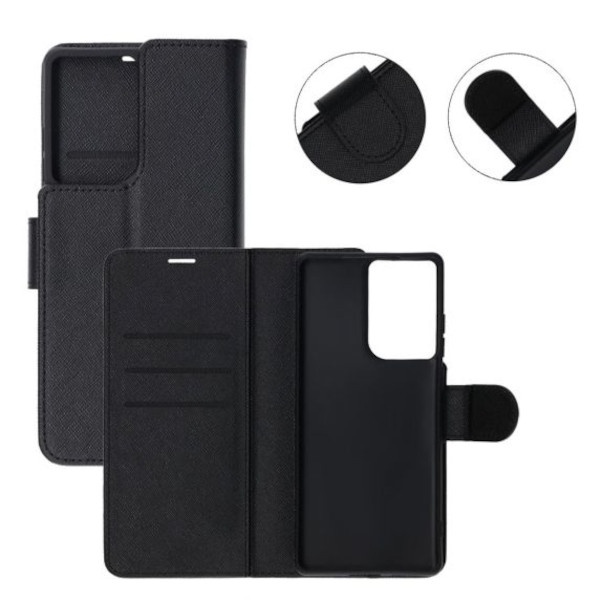 En stark magnet håller plånboken säkert stängd, vilket skyddar både telefonen och dina värdesaker.