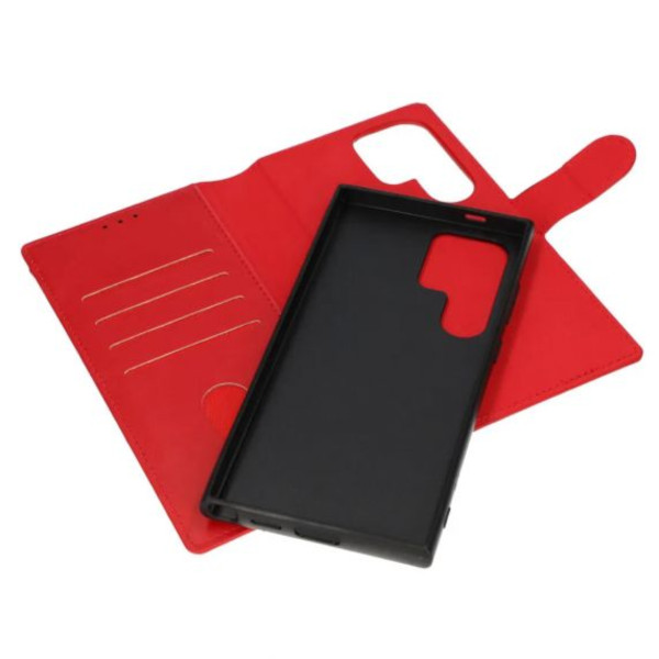 Ge din Samsung Galaxy S24 Ultra en sofistikerad stil med Rvelons röda plånboksfodral, tillverkat av högkvalitativt veganskt PU-läder. Fodralet kombinerar hållbarhet och funktionalitet och erbjuder en elegant och lyxig design. Tack vare det slitstarka materialet blir fodralet ett pålitligt val för daglig användning.